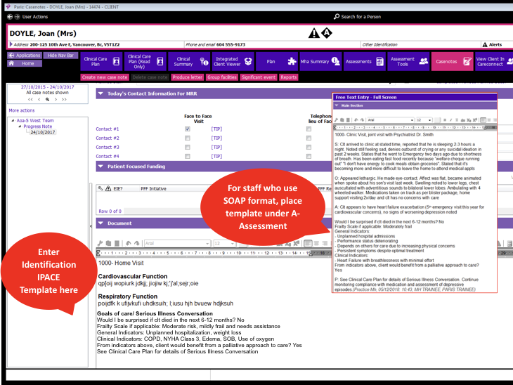 All RPACE documentation follows PARIS Guidelines. Please refer to PARIS User Help or your local Clinical Resource Nurse if you have any PARIS related questions