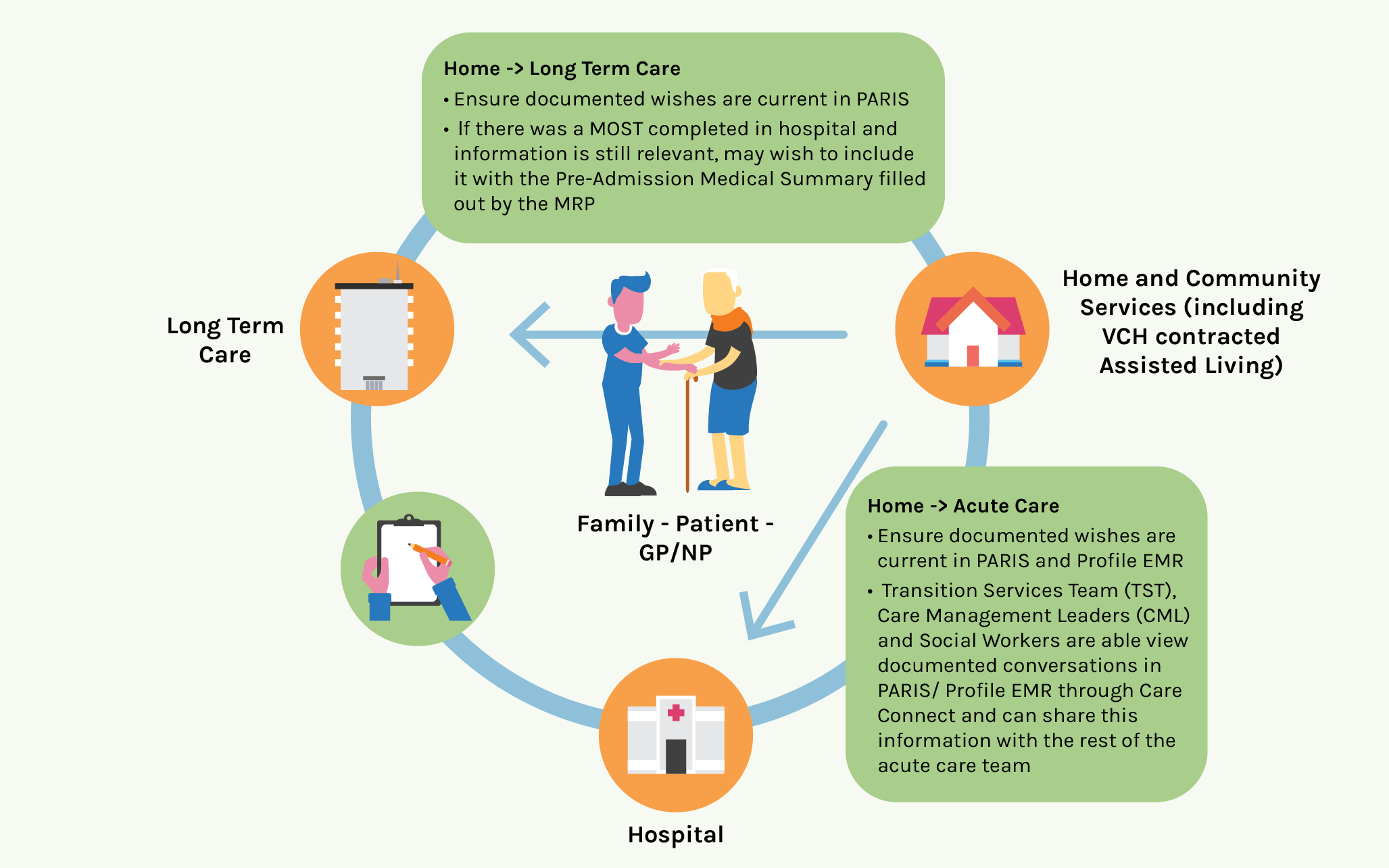 Patients will require a variety of services during the course of their illness. Ensuring a patient's wishes are communicated across the continuum of care allows teams to prioritize care according to people's wishes.