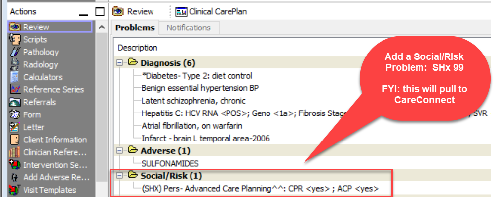 *Note that this Problem List including information about ACP gets shared into CareConnect*