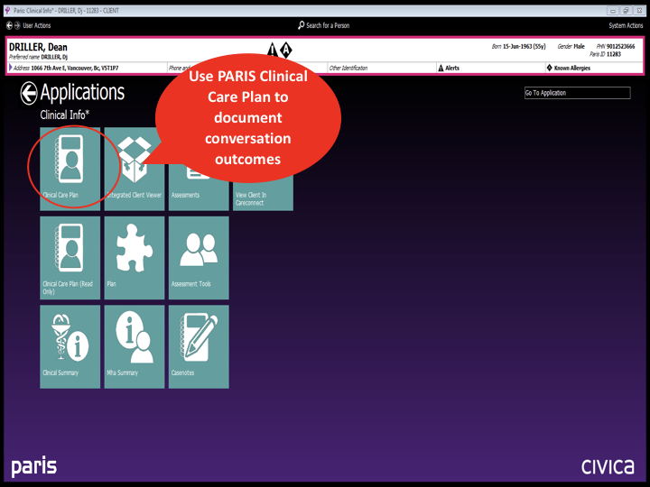 If you need a refresher on how to enter clinical care plans, please access the online education Paris 6 VCH Clinical Care Plan (ALL) on the LearningHub.